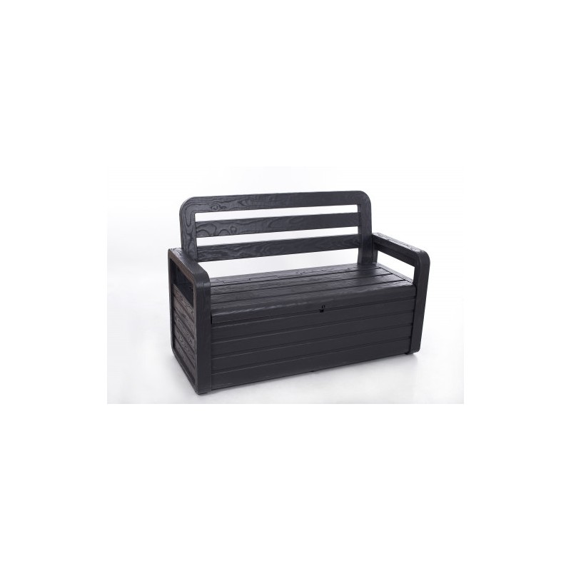Baú de polipropileno com assento para duas pessoas e bloqueável Fácil de montar em alguns pedaços e resistente ás intempéries.