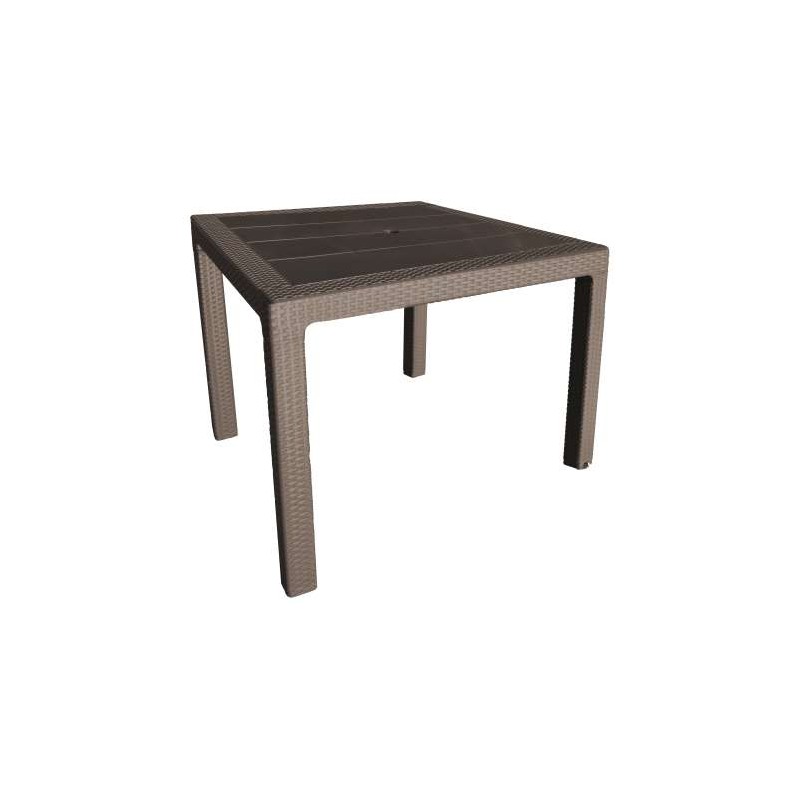 Mesa de estrutura forte, servida desmontada, com barras de reforço, design atual e resistente aos raios UV. Resina Wenge (tecnopolímero + fibra de vidro ). Medidas: 80x80x72cm. Forme o conjunto com a poltrona miranda ratan wengue (5394807).