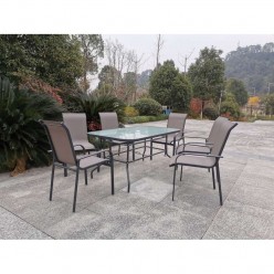 Mesa cor antracite com tampo de vidro temperado. Tubo de aço antracite