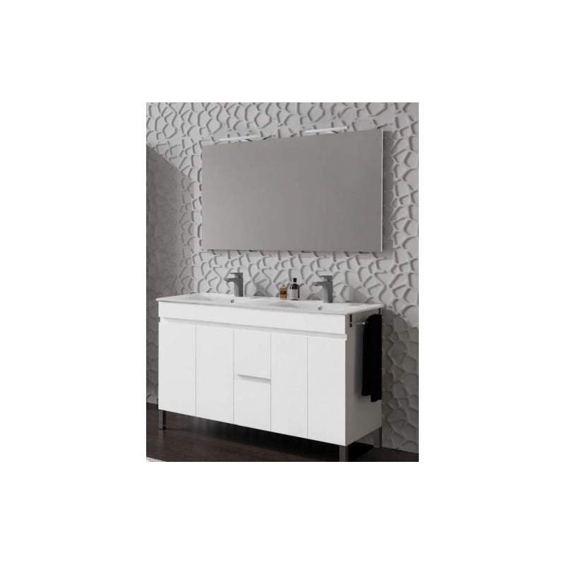 O Móvel de Casa de Banho Iris 120 Branco com Lavatório Duplo é uma solução elegante e funcional para casas de banho que requerem maior capacidade e comodidade. Este conjunto inclui um móvel suspenso de 120 cm de largura, com acabamento branco mate, e um lavatório duplo em cerâmica, ideal para uso simultâneo por duas pessoas.