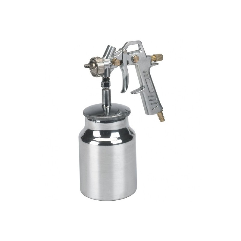 A pistola de pintura com alimentação por sucção oferece ao entusiasta da bricolagem inúmeras opções para realizar trabalhos de pintura e envernizamento em qualquer lugar da casa, oficina e garagem. A lata de alimentação por sucção permite um manuseio flexível da pistola de pintura sem que o conteúdo da lata escape. O regulador de ponto/cone largo permite que o padrão de pulverização da pistola seja ajustado exatamente para cada tarefa. Há também um bocal rotativo para alinhamento infinitamente ajustável do cone largo da horizontal para a vertical. Um controlador de quantidade de tinta garante a dosagem precisa da tinta. Com capacidade para 1 litro, a lata de sucção possui reservas generosas para longas sessões de trabalho. Uma ponta para conectar ao engate rápido de uma mangueira de ar comprimido está incluído.