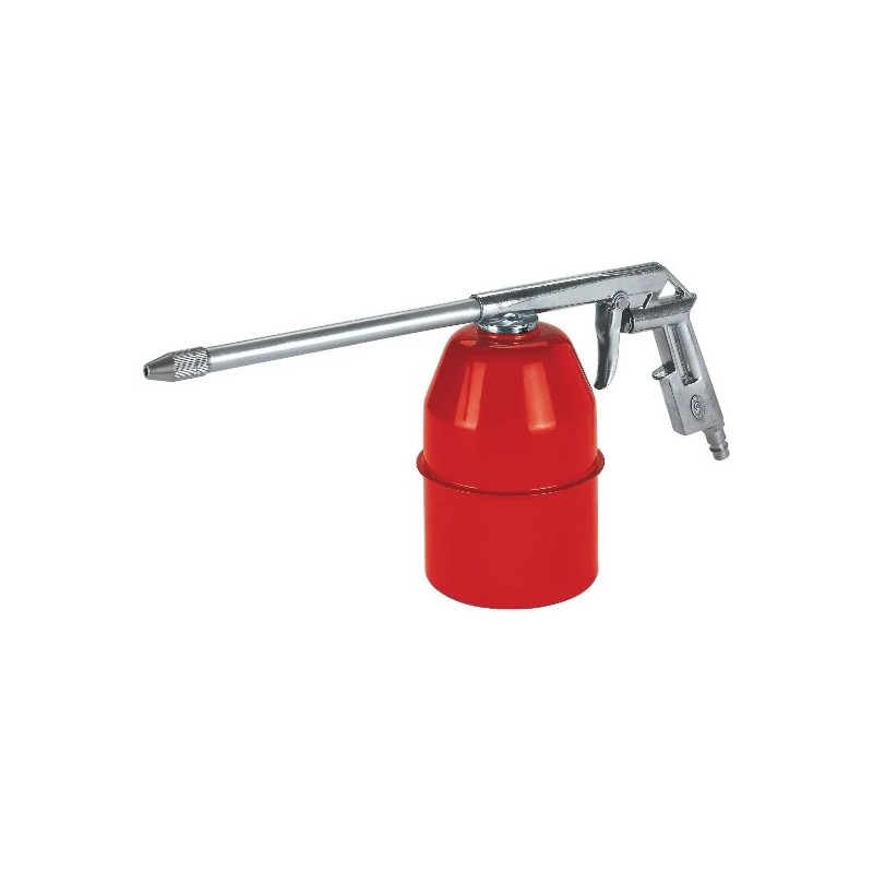 O seu bocal ajustável permite que a pistola de pulverização com copo de sucção seja especialmente adequada para pulverizar óleo leve e produtos de limpeza. O gatilho contínuo permite dosear de forma precisa o material de pulverização. O copo de sucção garante trabalhos sem pingos, com grande margem de movimentação. Com um volume de 0,9 litro, o copo de sucção permite intervenções prolongadas sem reenchimentos. Um bocal de encaixe para a ligação a um acoplamento rápido de ar comprimido está incluído no âmbito do fornecimento.