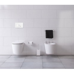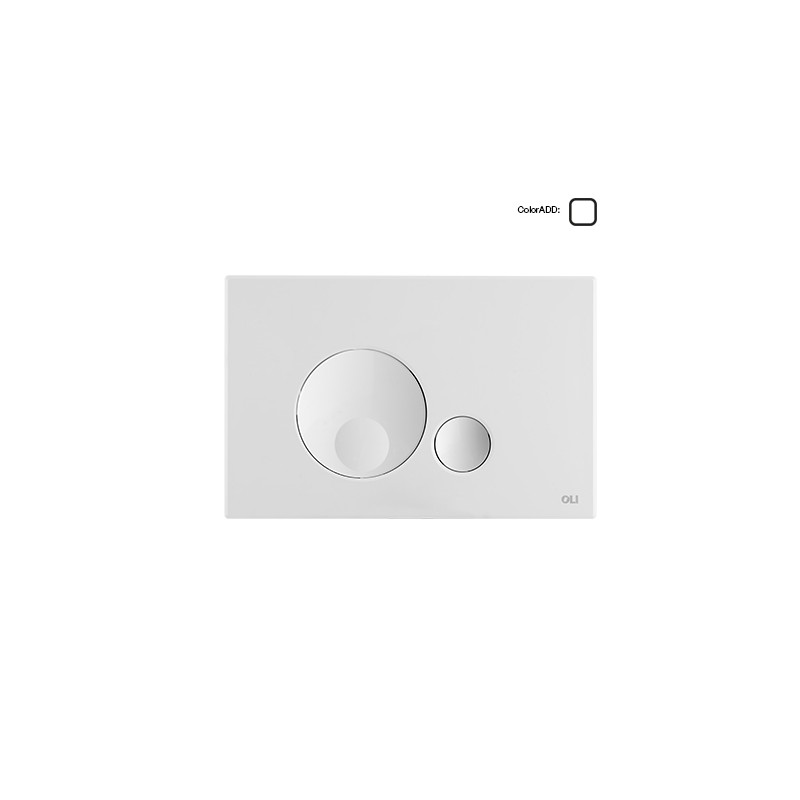 - Placa em ABS para autoclismos interiores com um design minimalista que combina uma espessura reduzida (6,5 mm) com uma alta resistência a choques e riscos. Ao contrário do seu nome, “Plain” destaca-se pela forma como distingue os botões de descarga, um botão côncavo e o outro convexo.