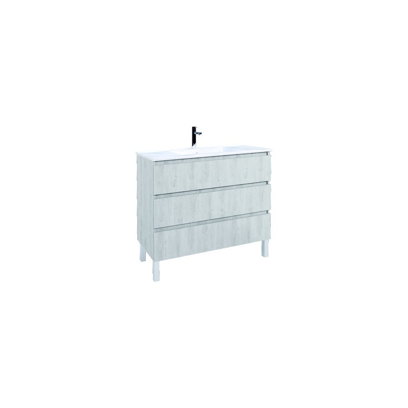 Móvel de casa de banho com 3 gavetas de 100 cm de largura. Lavatório e monocomando não incluídos.