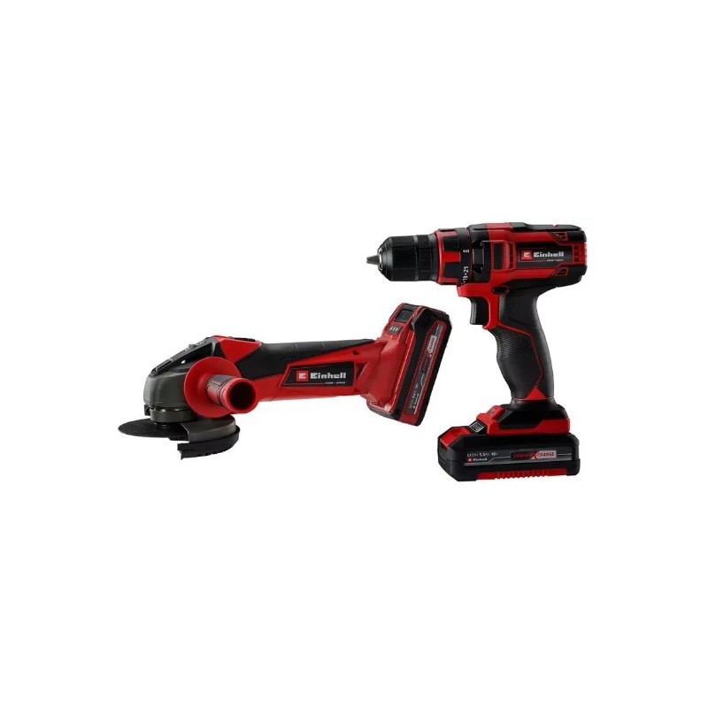 O conjunto de máquinas (ferramentas) Einhell TC-TK 18 Li Kit é composto por duas ferramentas básicas que fornecem a base para todas as situações que envolvem trabalhos manuais na oficina ou em casa: a furadeira sem fio Einhell TC-CD 18/35 Li e a rebarbadora sem fio Einhell TC-AG 18/115 Li na versão prática e totalmente flexível Power X-Change. A broca sem fios é uma ajudante compacta e potente, uma ferramenta multifuncional altamente versátil, que combina duas ferramentas elétricas numa única máquina: uma broca e uma aparafusadora sem fios.