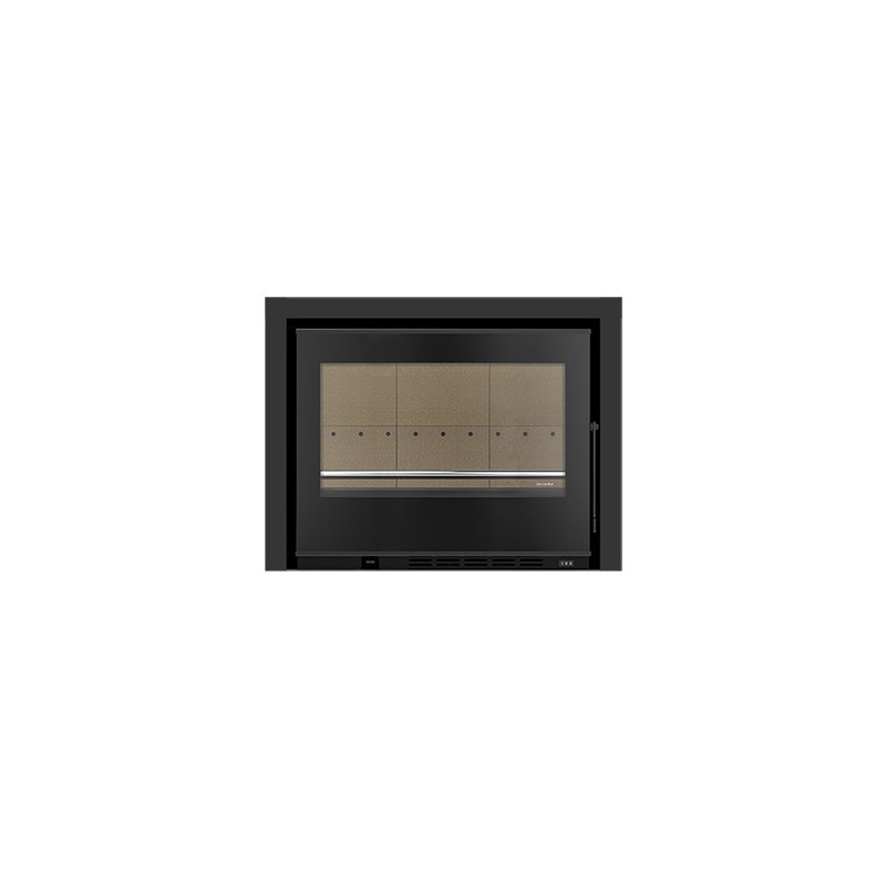 Alta performance com potência nominal de 9,3 kW ideal para espaços até 211 m³ rendimento térmico de 81,1 % consumo de lenha de cerca de 2,8 kg/h vidro limpo e porta de vidro vitrocerâmico para visão da chama ar quente ventilado canalizável para outras divisões construção robusta com peso de aproximadamente 109 kg saída de fumos de Ø 180 mm classe energética A+ eficiente e sustentável para conforto térmico elevado mesmo nos dias mais frios. Aro não incluído.