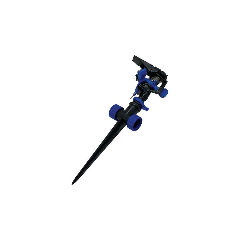 Aspersor de impacto de saída dupla com espeto, fabricado em ABS. Molas