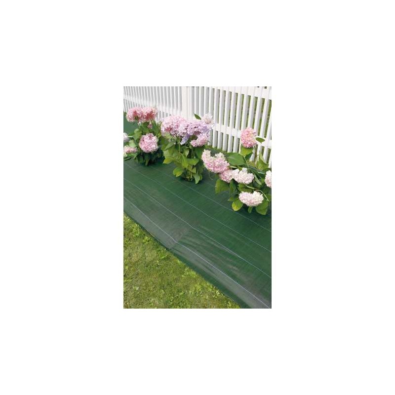 Malha para controle de ervas daninhas. Permeável ao ar e à água, além de oferecer grande resistência à passagem (animais, cortadores de relva ...) Permite maior desenvolvimento das culturas, impedindo que a luz do sol chegue ao solo para impedir o crescimento.