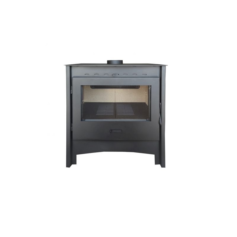 A salamandra a lenha Lara é um fogão robusto, construído em aço com design panorâmico, com câmara de combustão em vermiculita para melhor retenção de calor e vidro cerâmico limpo para visibilidade da chama. É pesada (cerca de 100 kg) e oferece desempenho eficiente e calor duradouro, ideal para aquecer espaços de forma tradicional e elegante.