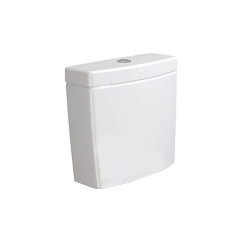 Tanque para sanita em cerâmica, para instalar em sanitas compactas Mobil, Entrada de água inferior, escoamento vetical. Descarga dupla (3/6l). Na embalagem: tanque e mecanismo de descarga.