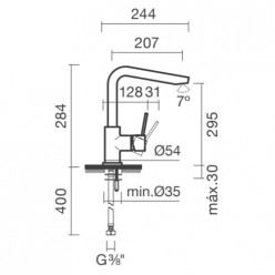 Torneira monocomando para instalar em lava-louças com furo para torneira. Cartucho de discos cerâmicos (ecológico) e perlator orientável. Monocomando. Corpo superior pivotante. Na embalagem: torneira, ligações flexíveis e kit de fixação.