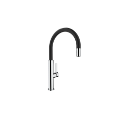 Misturadora monocomando exterior para cozinha com cano giratório e ligações de alimentação flexíveis. Prelator integrado.