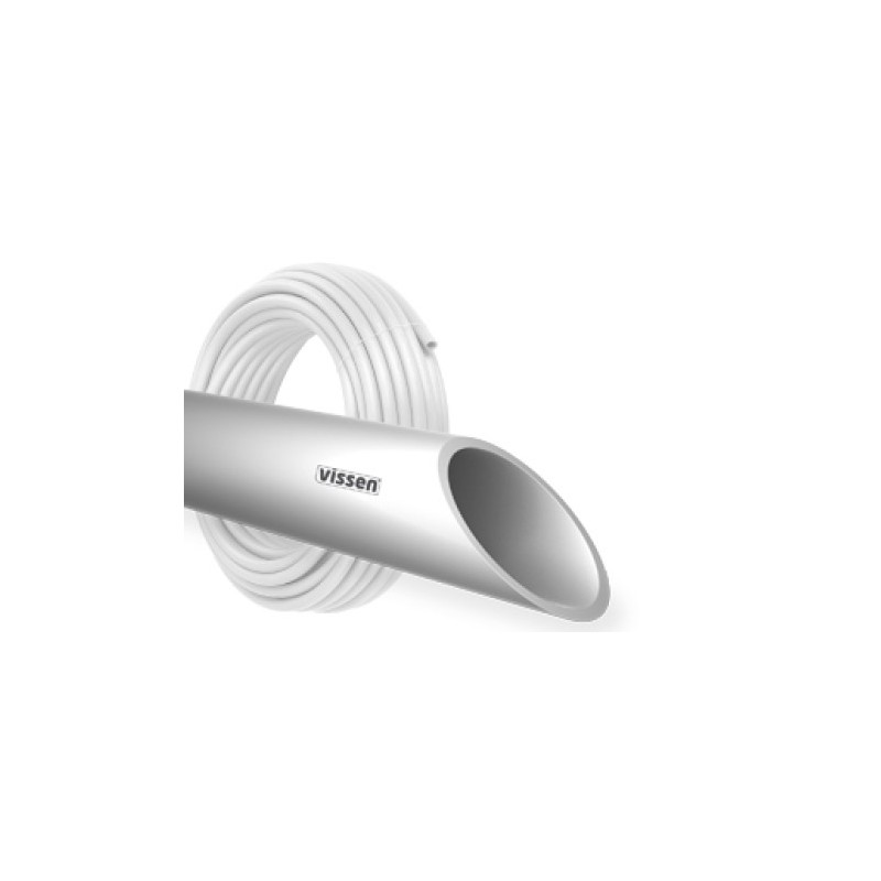 O tubo VISSEN Multicamada PEX-AL-PEX 25x2,5 é um tipo de tubo utilizado principalmente em sistemas hidráulicos e de aquecimento.Tipo: Multicamada (PEX-AL-PEX)Diâmetro externo: 25 mmEspessura da parede: 2,5 mmCamadas:PEX (polietileno reticulado) internoAlumínio intermediário (soldado a laser ou sobreposto)PEX externoPressão de trabalho: Normalmente até 10 bar (depende da temperatura), Temperatura de trabalho: Até 95°C contínuos (picos de até 110°C). Vantagens:Alta durabilidade e resistência térmica, Flexibilidade com memória térmica (mais fácil de moldar e instalar), Baixa dilatação térmica (graças à camada de alumínio), Não corrosivo e resistente à formação de incrustações, Compatível com conexões por compressão, prensagem ou rosqueadas