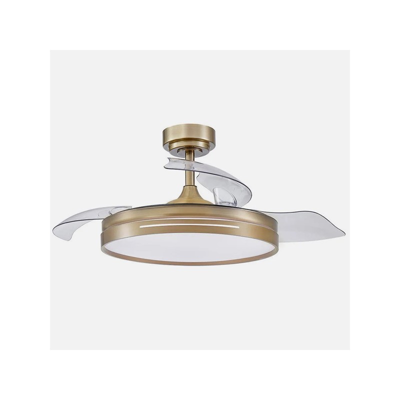 Ventilador DC série MICENAS fabricado em metal, ABS e policarbonato, na cor COURO, com três pás em ABS DESMONTÁVEIS, muito resistentes. Tem seis velocidades reguláveis. Motor de corrente contínua. Tecnologia LED integrada com uma potência de 72W, com 3 TEMPERATURAS DE LUZ SELECCIONÁVEIS (3000-4500-6000K), luz branca quente, natural e fria, e 7200 lúmens. Controlo do ar no verão ou no inverno. Mede 31/46X48 centímetros com as pás dobradas e 31/46X108 centímetros com as pás desdobradas. Inclui duas hastes de 10 e 25 centímetros. Com telecomando INCLUÍDO, REGULÁVEL EM INTENSIDADE, com MEMÓRIA DE CORES incorporada e TEMPORIZADOR DE 2 H.