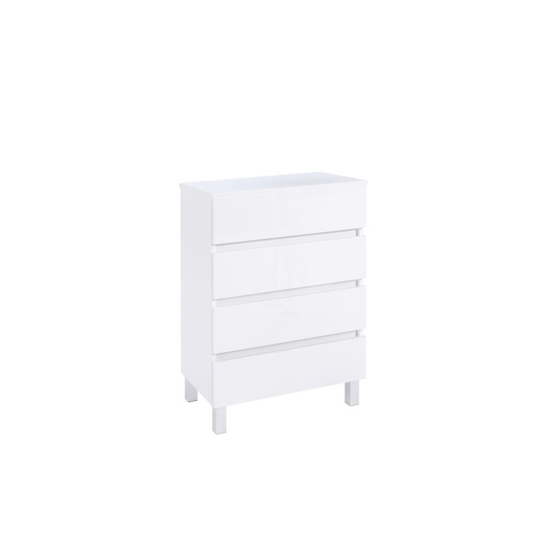 Móvel auxiliar de casa de banho, de chão, composto por duas portas, uma prateleira fixa, uma gaveta Folding (Max.10kg) e pés acetinados, de alumínio.Móvel produzido em superPan de 16 mm com acabamento em laminado ou lacado. O superPan é um painel constituído por aglomerado de partículas de madeira aglutinadas com resinas (UF), sendo as faces em MDF, conferindo ao painel uma melhor performance mecânica e excelente qualidade da superfície.O material utilizado cumpre com os requisitos da Classe E1 (analizado segundo EN ISO 12460-5) definidos na Norma Europeia EN 312:2010. Possui selo de qualidade de AITIM. Também possui certificação PEFC.